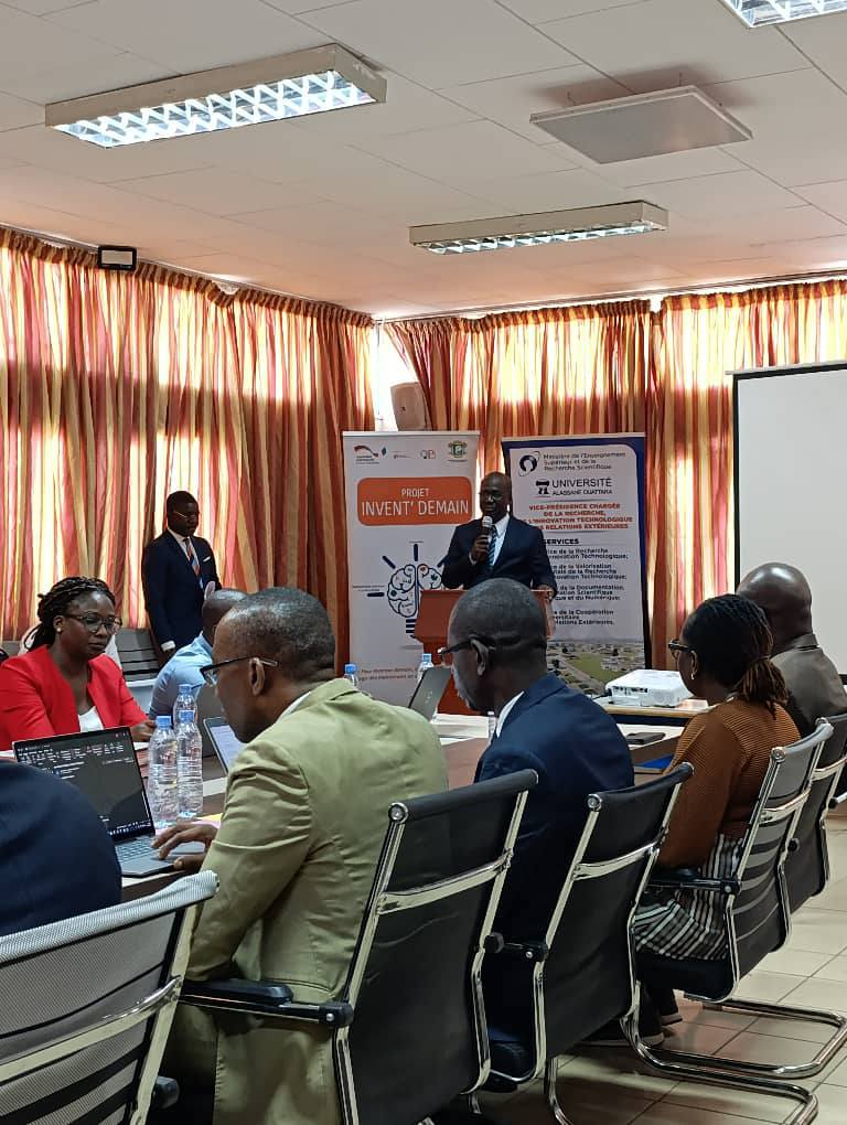 Autour du Professeur KOUAKOU Koffi, Président de l’UAO, étaient réunis les conseillers techniques de la GIZ, des représentants de la Direction de la Valorisation de l’Innovation du Ministère de l’Enseignement supérieur et de la Recherche scientifique, les autorités universitaires et la communauté académique. Ensemble, ils ont réaffirmé l’importance de doter la Côte d’Ivoire d’un écosystème de l’économie de la connaissance structuré, dynamique et durable.