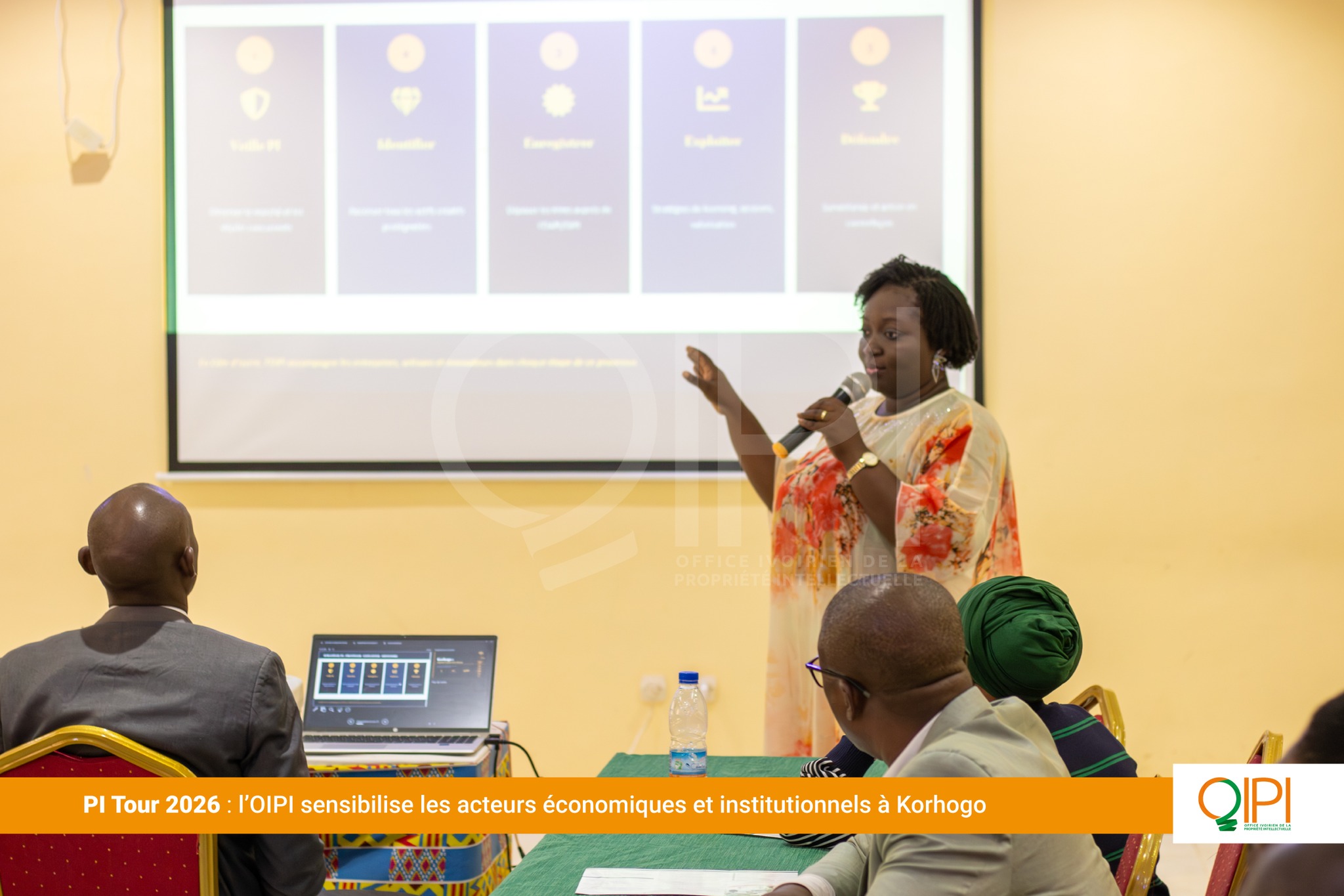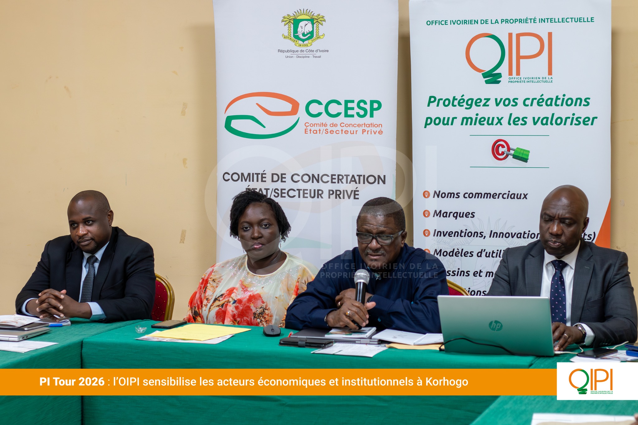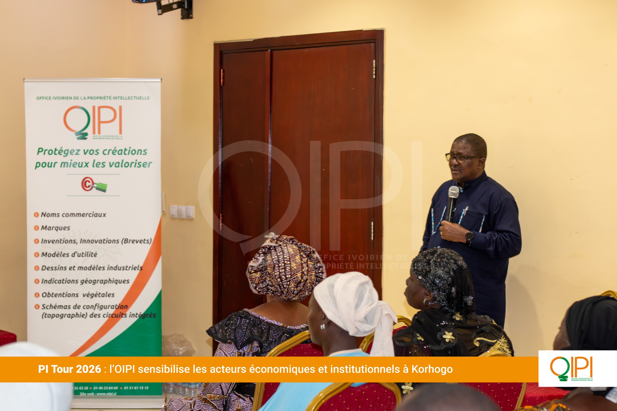 Du 22 au 25 mars 2026, l’Office Ivoirien de la Propriété Intellectuelle (OIPI) a poursuivi sa tournée de proximité, dénommée PI Tour, à Korhogo et à Bouaké. Cette initiative itinérante vise à promouvoir la culture de la propriété intellectuelle au sein des villes de l’intérieur de la Côte d’Ivoire. Organisées en partenariat avec le Comité de Concertation État-Secteur Privé (CCESP), ces étapes ont mobilisé deux publics complémentaires : les acteurs économiques, artisans, bijoutiers, créateurs et les agents de l’administration publique et des collectivités territoriales, appelés à devenir des relais de la promotion de la propriété intellectuelle dans leurs zones.