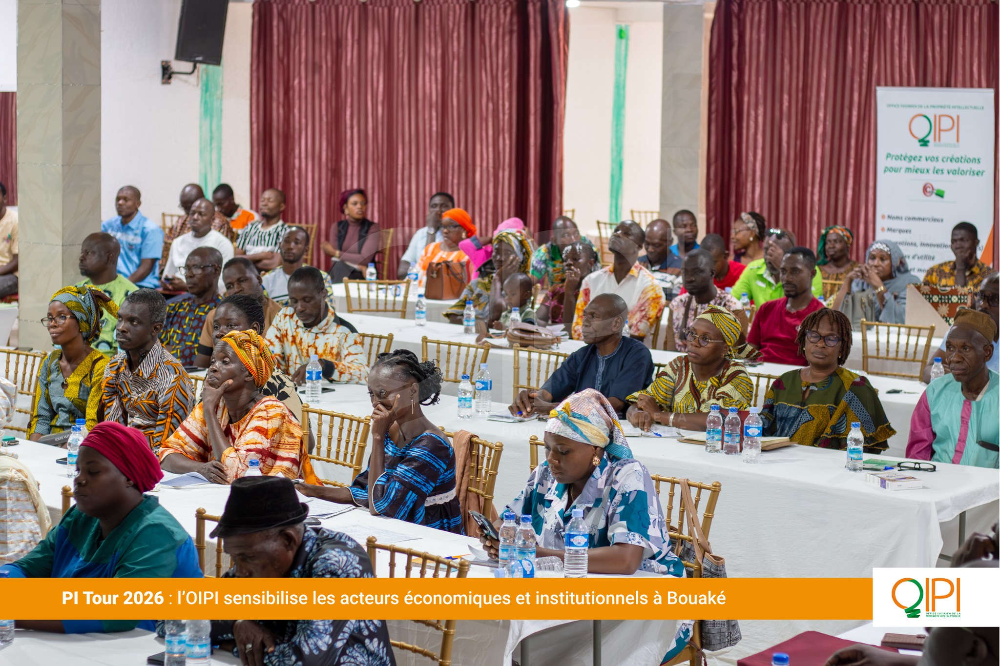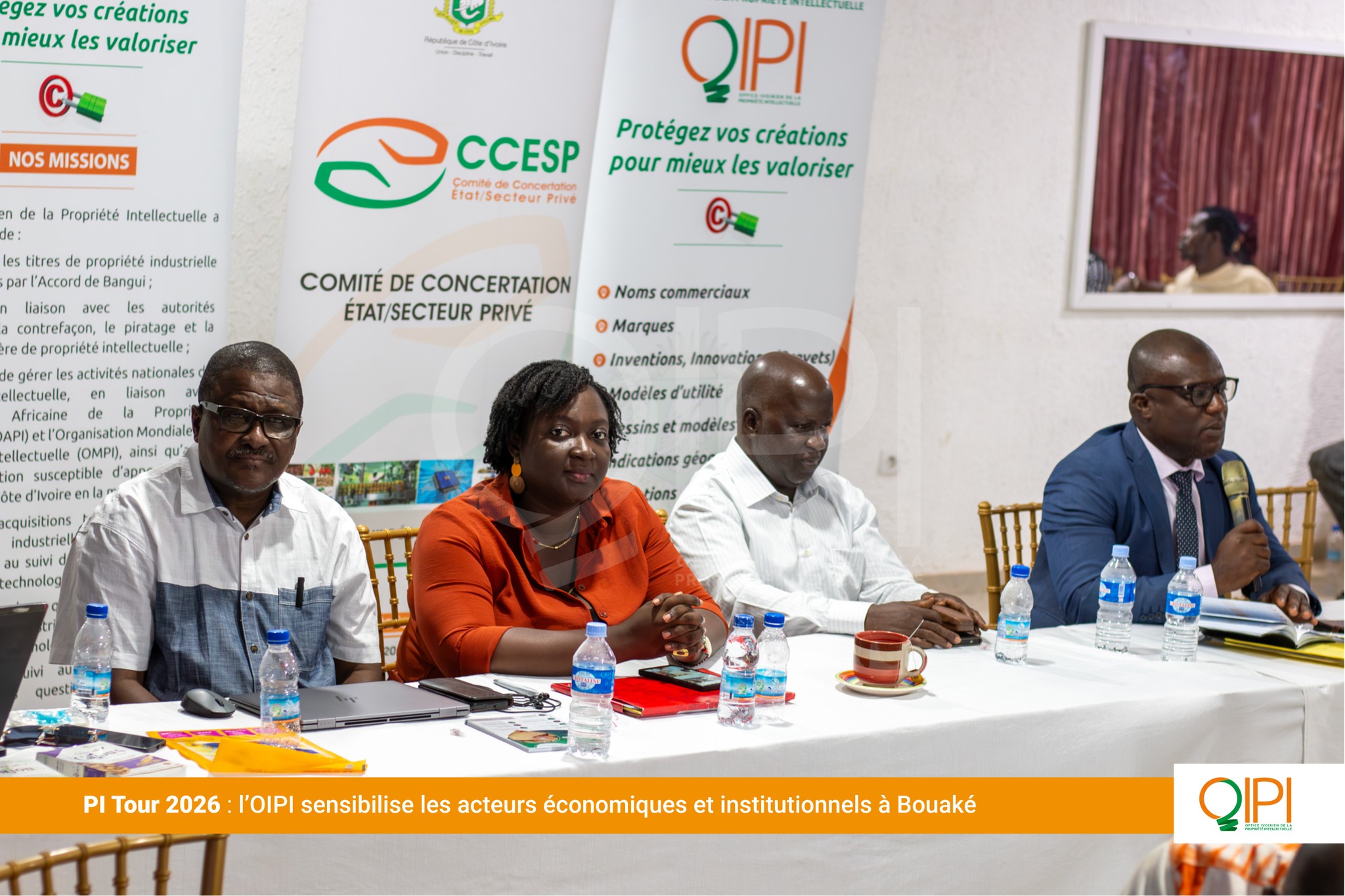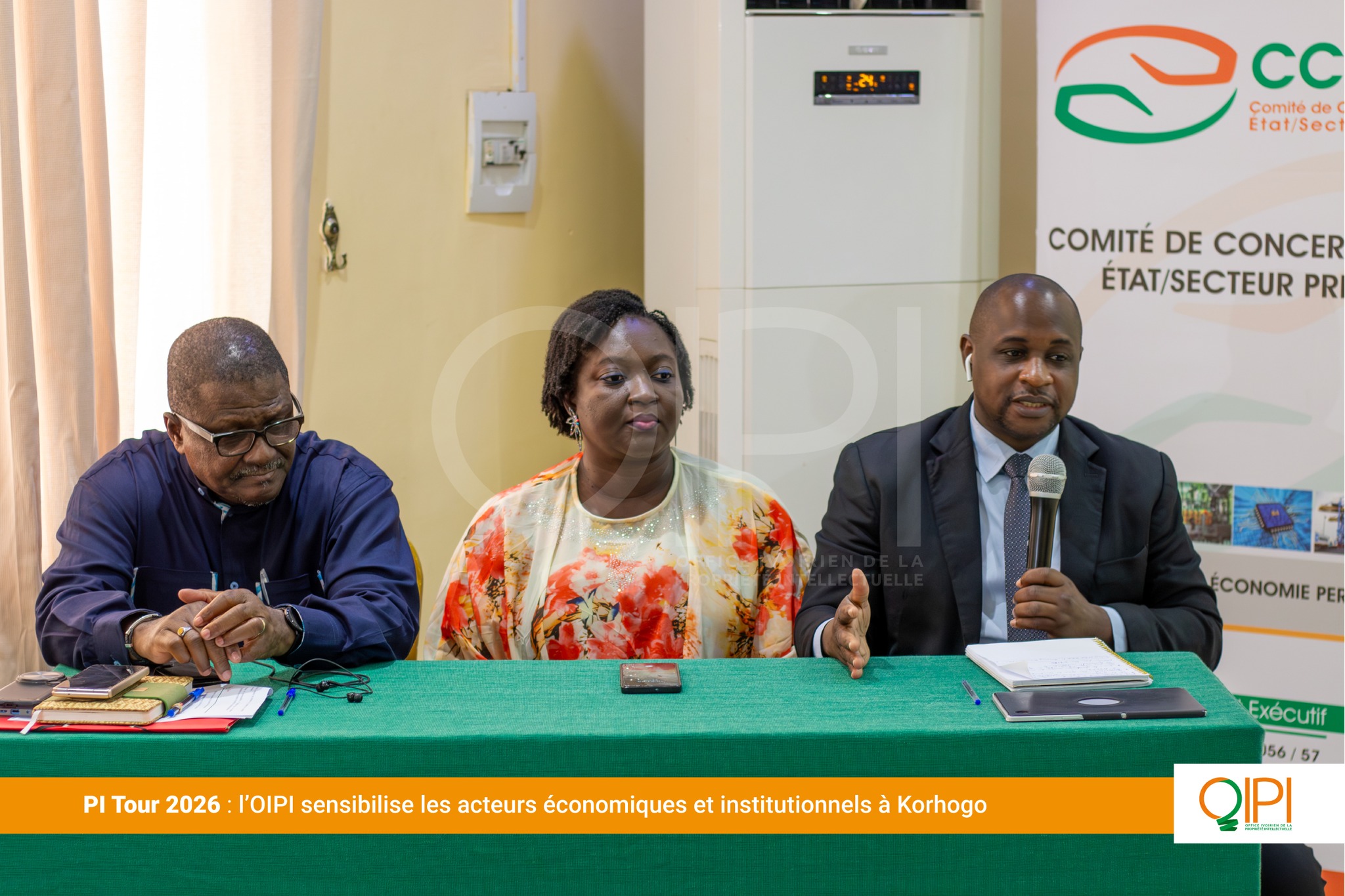 Du 22 au 25 mars 2026, l’Office Ivoirien de la Propriété Intellectuelle (OIPI) a poursuivi sa tournée de proximité, dénommée PI Tour, à Korhogo et à Bouaké. Cette initiative itinérante vise à promouvoir la culture de la propriété intellectuelle au sein des villes de l’intérieur de la Côte d’Ivoire. Organisées en partenariat avec le Comité de Concertation État-Secteur Privé (CCESP), ces étapes ont mobilisé deux publics complémentaires : les acteurs économiques, artisans, bijoutiers, créateurs et les agents de l’administration publique et des collectivités territoriales, appelés à devenir des relais de la promotion de la propriété intellectuelle dans leurs zones.