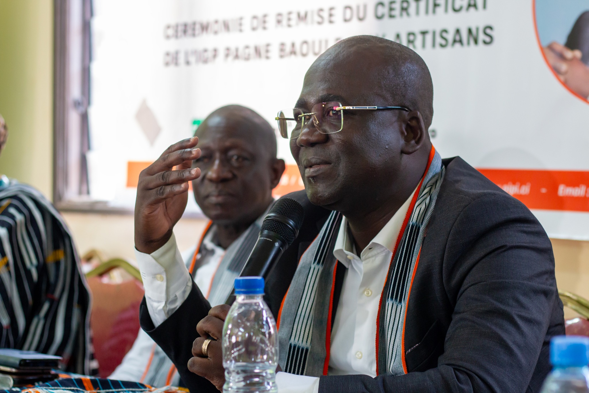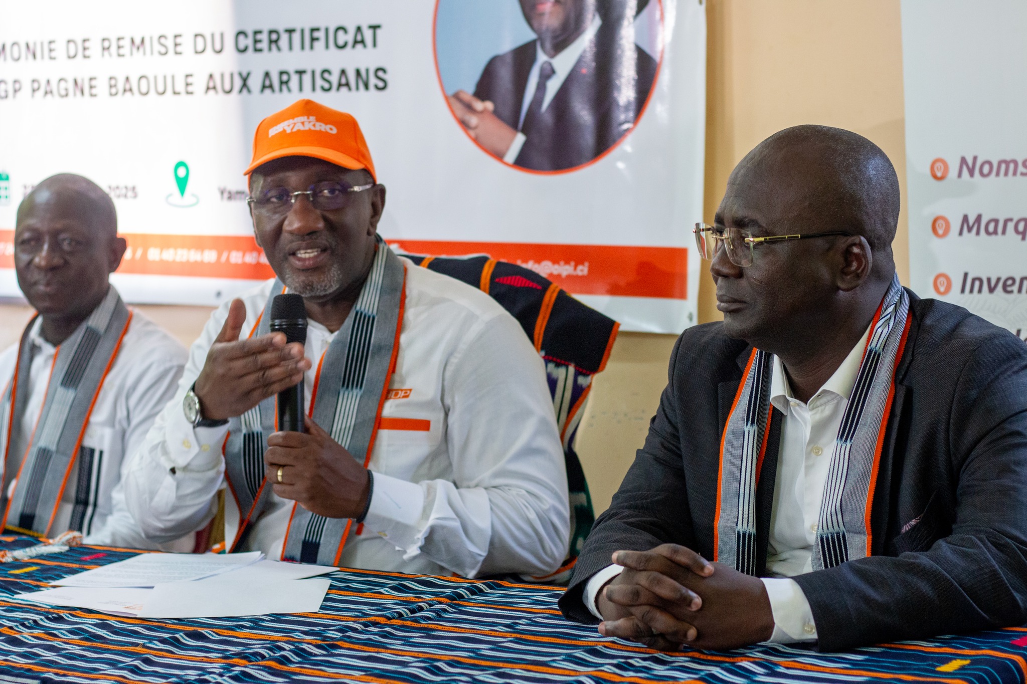 Quant au Dr Souleymane DIARRASSOUBA, Ministre du Commerce et de l’Industrie, il a rappelé que la labellisation du Pagne Baoulé par une IGP s’inscrit pleinement dans la vision du Président de la République, SEM Alassane OUATTARA, de valoriser les produits du terroir et de promouvoir l’économie locale et la création de valeur ajoutée au bénéfice direct des producteurs et des artisans.